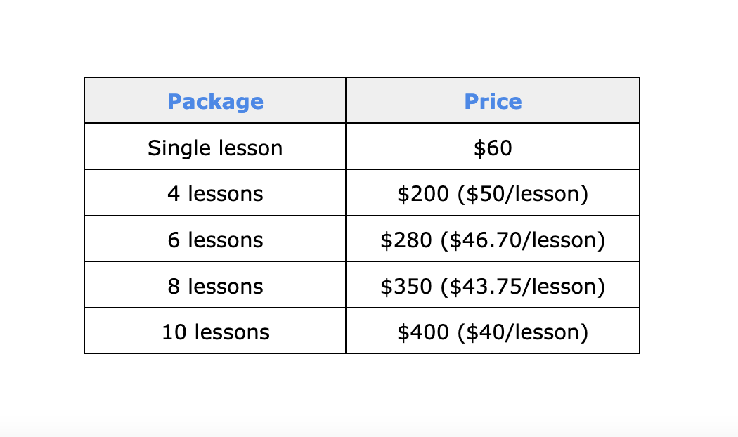 I offer a free 45-minute consultation to prospective students who would like more information and/or to experience a demo lesson.
